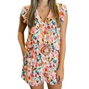 Lavender Brown Belted Laura Shorts in Orange Floral BNQ6449P Cotton Pull On XS XSmall NEW NWT