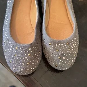 Elegant silver loafers with sparkling studs. Ideal for any occasion. New condition only worn in doors. No box comes from a smoke free home.
