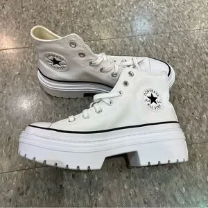 Converse Chuck Taylor, Chuck Taylor All Star, Converse lugged heel, platform high tops, white Converse sneakers, women's Converse, high top sneakers, lugged platform shoes, Converse All Star high top, fashion sneakers, white platform sneakers, chunky sole sneakers, street style shoes, trendy Converse, women's high tops, platform Converse shoes, casual sneakers, all white Converse, elevated sneakers, modern high tops, versatile sneakers, classic Converse look, durable sneakers, iconic footwear, everyday sneakers