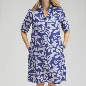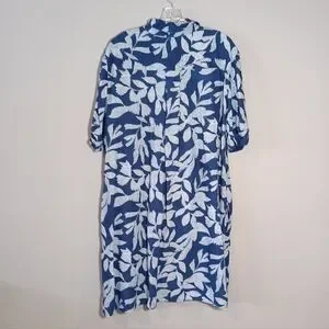 Chico’s Linen Leaf Print Popover Shirt Dress size 3 XL 16 Blue