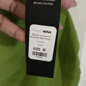 Fashion Nova Lime Green One-Shoulder Cutout Ruched Midi Dress