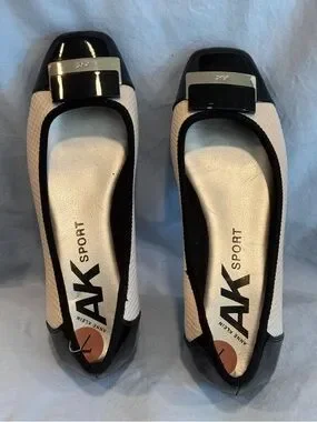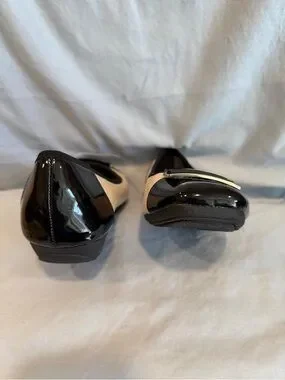 Anne Klein Two-Tone Black and Cream Patent Trim Ballet Flats