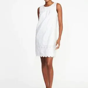 Gap Women's Scalloped-Yoke Eylet Dress Size SP White