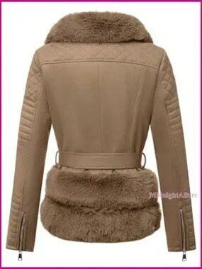 Brand new and in flawless condition — this chic faux leather jacket offers a sleek moto style perfect for casual outings and everyday wear across seasons. The slim fit is flattering and modern, while the cozy sherpa lining and detachable fur collar provide adjustable warmth.