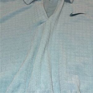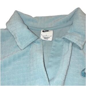 Pre-owned Nike women’s cropped sweatshirt in size Medium. Features a light blue color with embroidered Swoosh logo on the chest and a relaxed cropped fit.