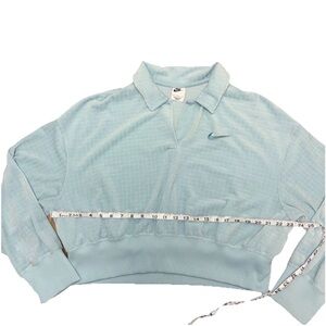 Nike Cropped Sweatshirt Womens Medium Light Blue Swoosh Pullover Long Sleeve