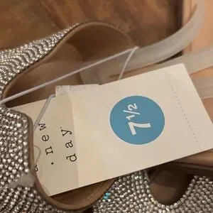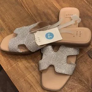 a new day Silver Rhinestone Slide Sandals with Nude Footbed