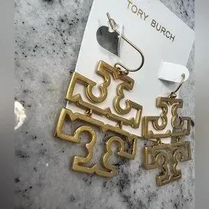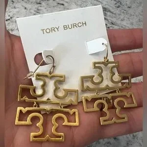 💯 🔥Brand New NWT Tory Burch TB Logo Britton Gold Earrings