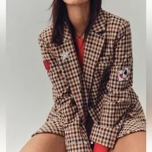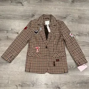 NWT AVEC LES FILLES ANTHROPOLOGIE PLAID PATCHWORK BLAZER XS