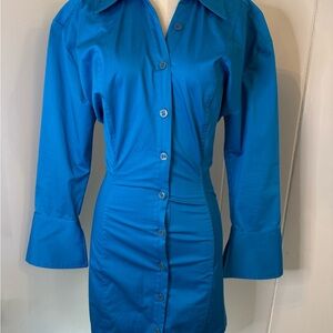Zara Bright blue Button-Up Shirt dress NWT Sz S