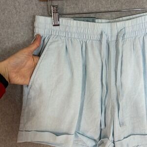 Old Navy Linen Blend Drawstring Shorts Light Blue Mid Rise Womens Sz Medium NWT