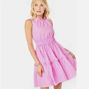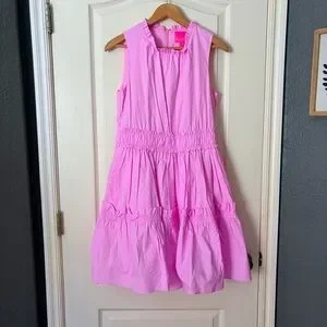 Lilly Pulitzer Elina Cotton Poplin Stretch Tiered Ruffle Rose Pink Dress