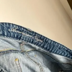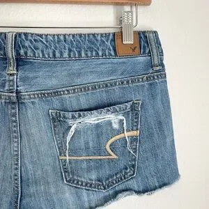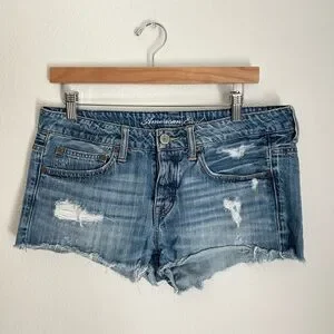 American Eagle 2010 low rise distressed medium wash denim jean short. In good preloved condition with minor wear.