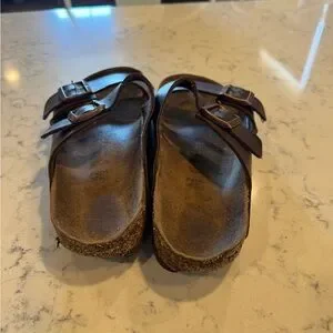 Birkenstock Arizona Brown Dual-Buckle Leather Slide Sandals