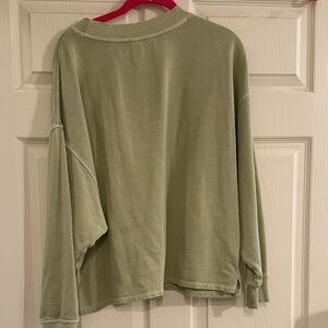Soft cream waffle-knit fabric. Crew neckline with subtle rib trim. Cozy, textured layering piece.
