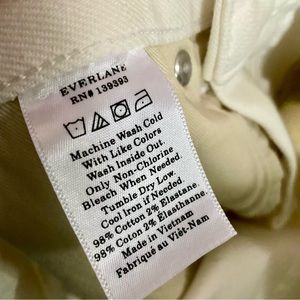 Everlane Jeans, High Rise, White Denim, Bone, Off White, Skinny Jeans, Cropped, Size 26, Cotton Stretch, Quiet Luxury, Coastal Grandma, Capsule Wardrobe, Minimalist, Neutral, Classic, Ethical Fashion, Workwear, Summer Denim