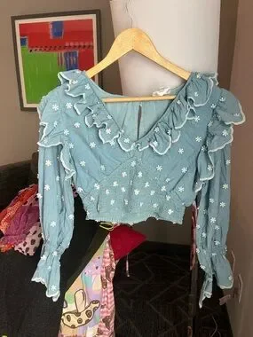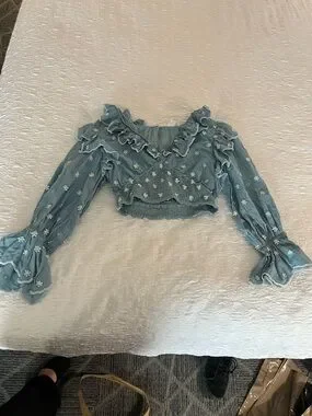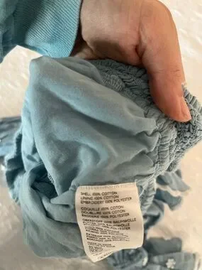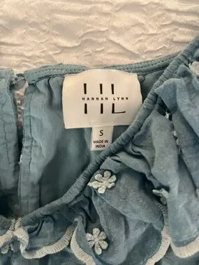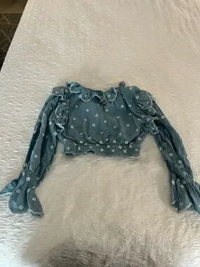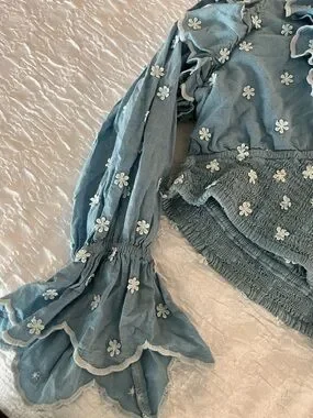 Anthropologie Hannah Lynn chambray embroidered smocked crop top longslv blouse