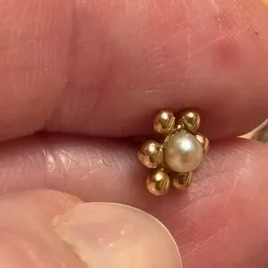 FOR JULIE Single Antique Gold Pearl Flower Stud Earring