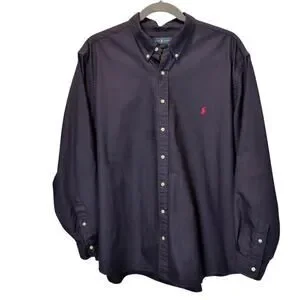 Ralph Lauren Men's Sz 3XB Navy Blue Button Down Shirt Long Sleeve Big & Tall