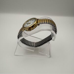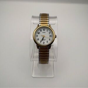 Timex Two-Tone Gold and Silver Expansion Band Watch with White Dial Indiglo