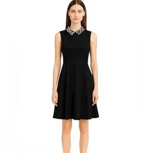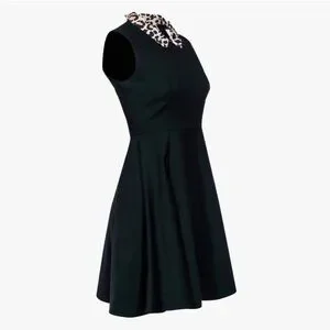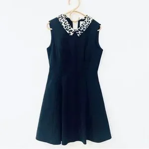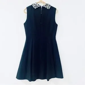 Kate Spade Black Fit & Flare Dress w/ Leopard Collar EUC