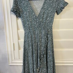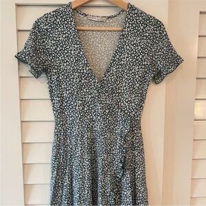 Pull&Bear Green Mini Dress with White Floral Print