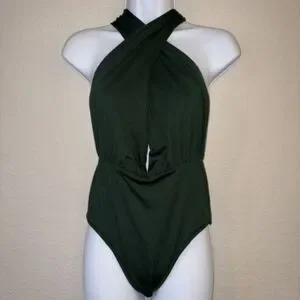 Dark green bodysuit, can be tied many different ways. Excellent condition, worn once Smoke free home