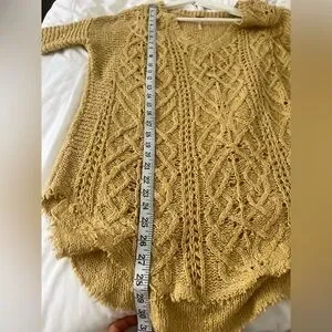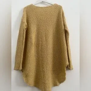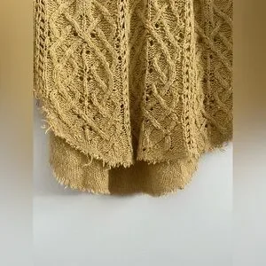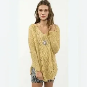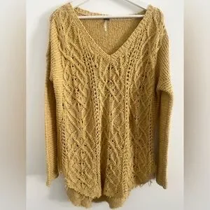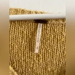 FREE PEOPLE Cross My Heart Yellow Loose Cable Knit Sweater Sz S Boho grunge fray