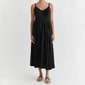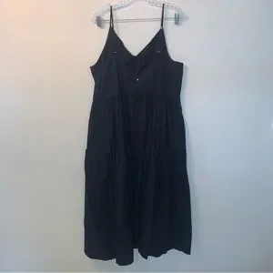 Cuyana Black Tiered Cami Midi Dress Organic Cotton with Pockets XL