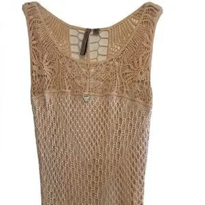 ‼️👉Beautiful Knit dress for women by Guess in beige. Thanks to the coarse knit design, which is adorned by iridescent sequin applications. A summer favorite for fashion-conscious women. Straight fit. Round neck. Integrated undergarment. Sleeveless. Size XS. Perfect condition. Retail price $129