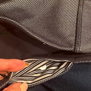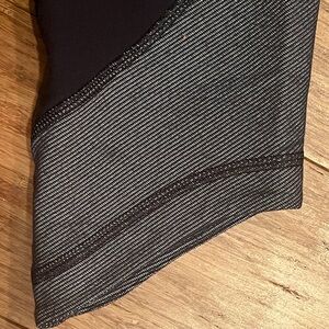 Lululemon Colorblock cropped leggings. Navy center panels with micro striped sides, breathable fabric interior and waistband accents. Stretchy, breathable fabric. Versatile for workouts or casual wear.