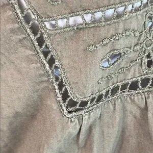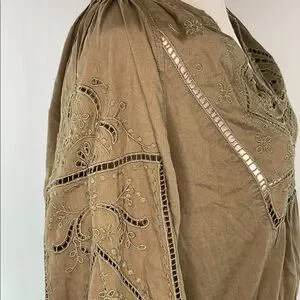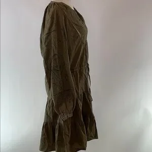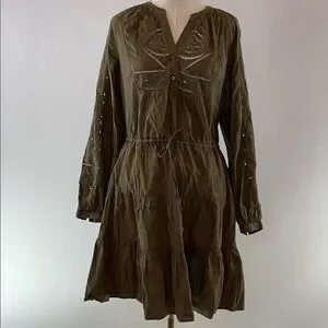 Green cotton (100% Cotton). Hourglass. V-neck. Long sleeves. Pull-on. 38" from shoulder to hemline. Imported.