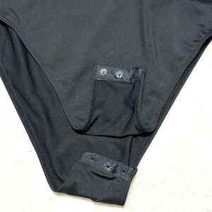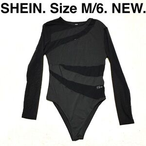 5/$15💥 SHEIN Black Long-Sleeve Mesh Sheer Paneled Bodysuit Stretchy Top