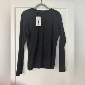 NWT Zesica Black Ribbed Long Sleeve Top Size M