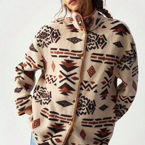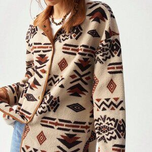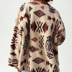 Stay warm and stylish in this oversized, long sleeve coat featuring an all over print design. With a collar neckline and a casual style, it's perfect for spring and fall. The teddy coat is available in brown and comes in plus sizes for a comfortable fit.