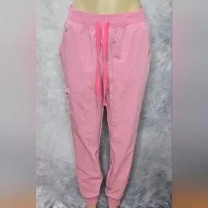 Figs Pink Jogger Bottoms with Hot Pink Drawstrings