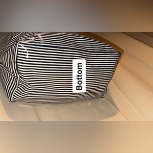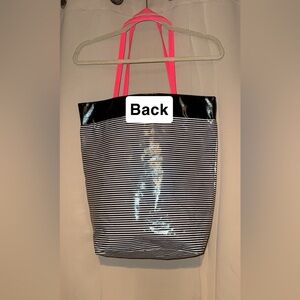 Victoria's Secret Black & White Striped Tote with Pink Handles