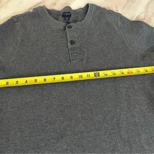 J.Crew XL Gray Waffle Knit Henley Long Sleeve Shirt Thermal Casual Top