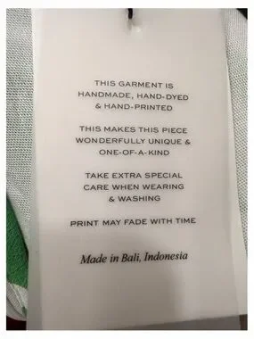 This garment is hand-made, hand-dyed and hand-printed in Bali, Indonesia.