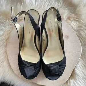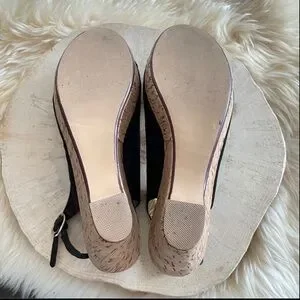 ROBERTO VIANNI Black Peep Toe Cork Wedge Slingback Sandals Women's Size 37 Y2K
