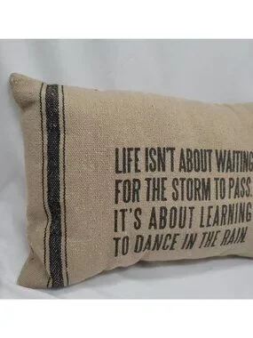 Add charm to your space with this burlap pillow featuring an inspirational quote. Stylish and versatile for any room.