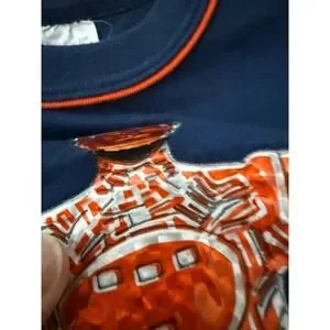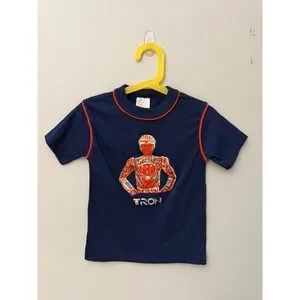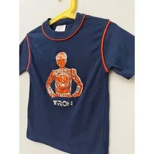 Amazing vintage kids Tron t-shirt with plastic holographic image attached to shirt. Peeling back somewhat at bottom of head, see photos. Tagged a 6/7, see measurements: