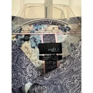 Discover a touch of sophisticated style with this Eight X button-up shirt. The intricate paisley pattern, rendered in a classic gray and white palette, offers a refined yet eye-catching design that effortlessly elevates your look. Crafted from 100% cotton, this shirt promises breathable comfort and a soft feel against your skin, making it a pleasure to wear all day long. Its timeless design and quality construction make it perfect for a casual day out, a business casual office setting, or even a relaxed evening gathering.
