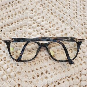 Color: Blue tortoise/navy patterned acetate with subtle translucent details.