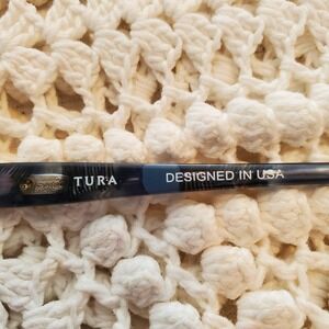 Markings: "TURA" and "DESIGNED IN USA" on inner temple; model and size info on opposite arm.