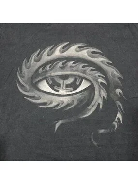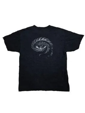 This is a vintage 2005 Tool 10000 Days band tee T-shirt in size XL. This Y2K metal rock promo shirt features a graphic print with a crew neck and short sleeves, made of black cotton material. The shirt showcases the band's eye-catching logo and appeals to fans of rock, music, grunge, and gothic themes from the 90s. This retro piece is machine washable and comes with a double-sided print, making it a unique addition to any music lover's wardrobe.