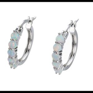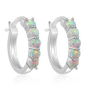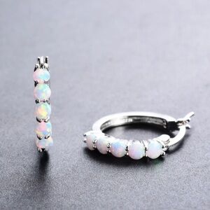 These elegant silver hoop earrings feature stunning opal stones, perfect for adding a touch of sophistication to any outfit.