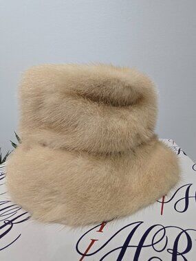 Beautiful vintage real fur hat, likely mink, in a soft cream‑beige tone.