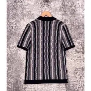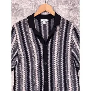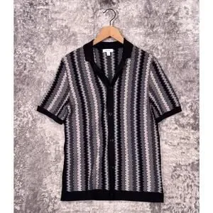 REISS Knit Shirt Small Mens Gibbon Chevron Cuban Camp Collar Resort Button Down