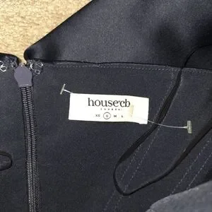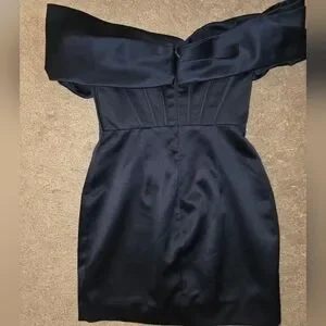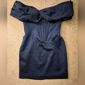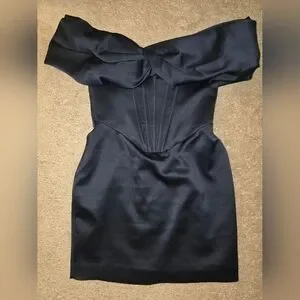 House of CB Nurul Satin Off Shoulder Mini Dress Navy Small